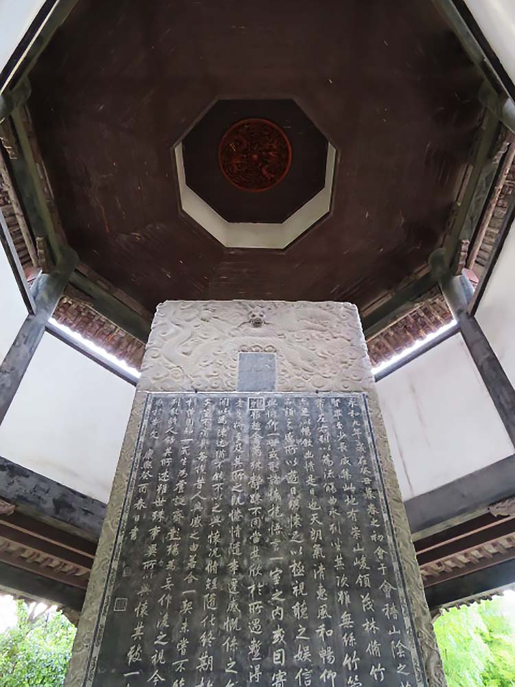 碑の高さは1.73メ-トル、幅1.02メ-トル、厚さ0.27メ-トル、碑の「蘭亭」二文字は清の康熙帝の真筆。